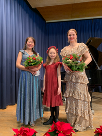 Heute konzertierten wir bei einer Weihnachtsfeier. Unter anderem musizierten wir aus dem Weihnachtsoratorium von J.S. Bach "Flößt, mein Heiland, flößt dein Namen". Das "Echo-Mädchen" Veronika sang auch sehr schön!