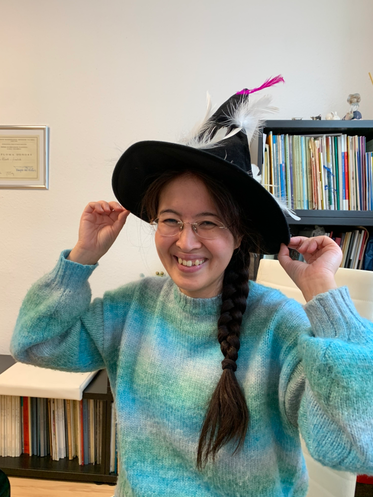 Es hat mir Spaß gemacht, am Altweiber zu unterrichten! Ich durfte auch den Hexenhut probieren🥳 カーニバルでのレッスン!みんな可愛かったです!「先生もかぶってみて!」と言われたので、魔女の帽子を試させてもらいました🥳